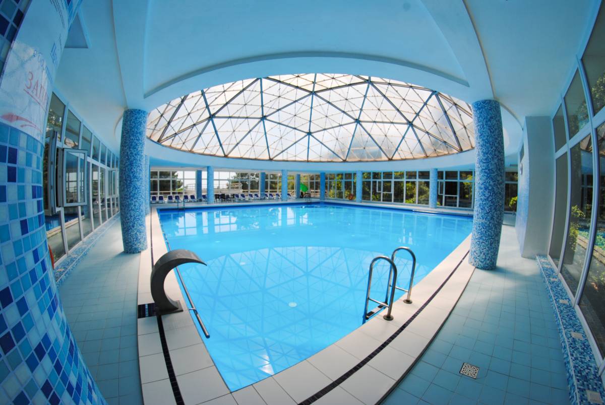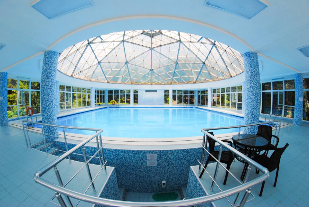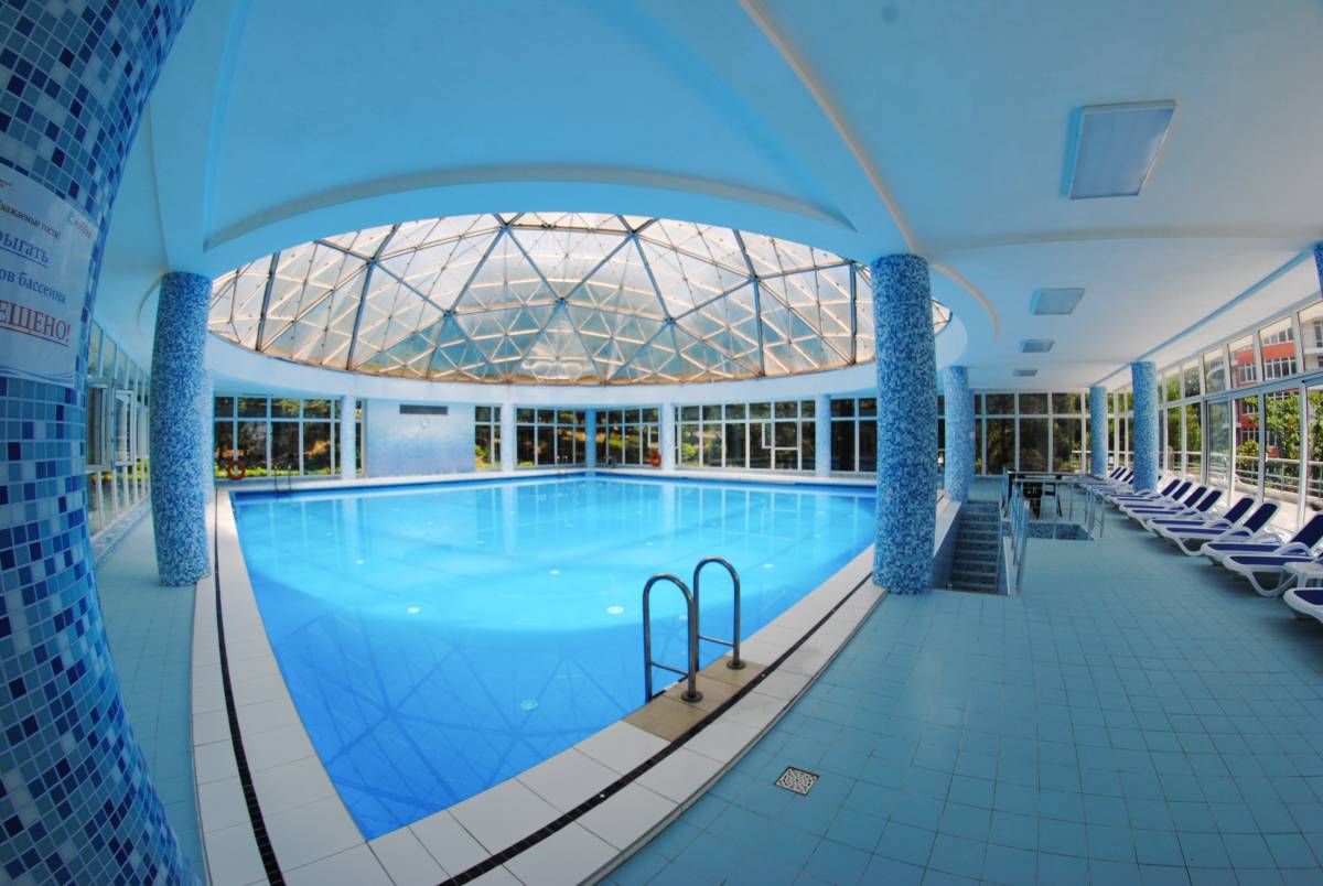 Крытый комфортабельный бассейн с морской подогреваемой водой на территории санатория.