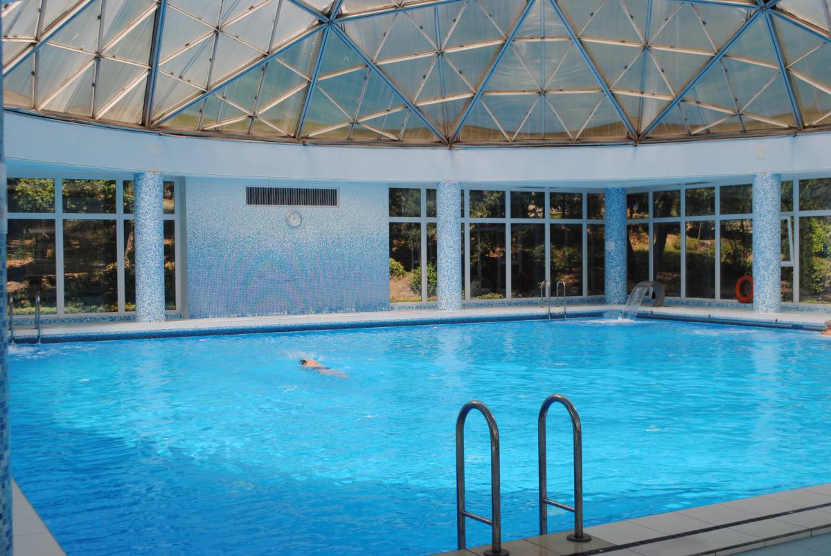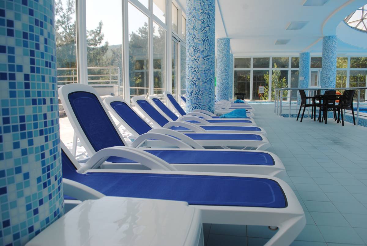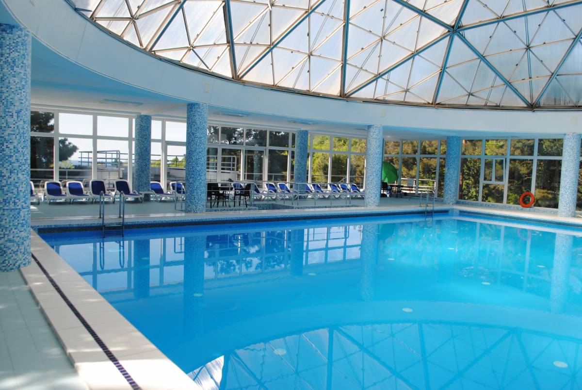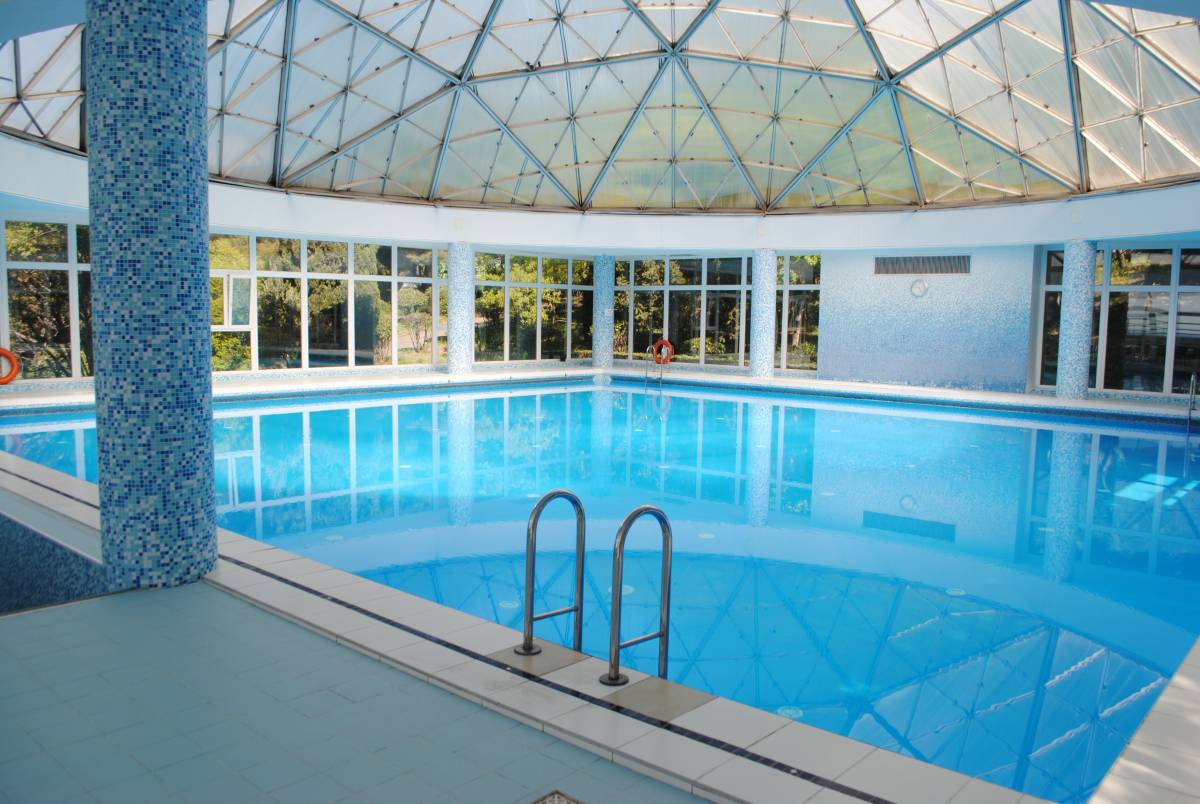 Крытый комфортабельный бассейн с морской подогреваемой водой на территории санатория.